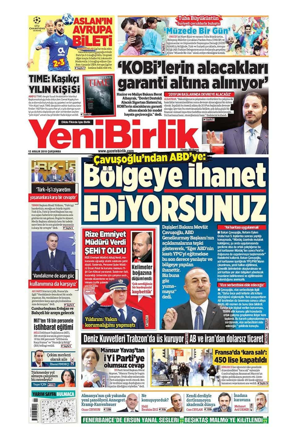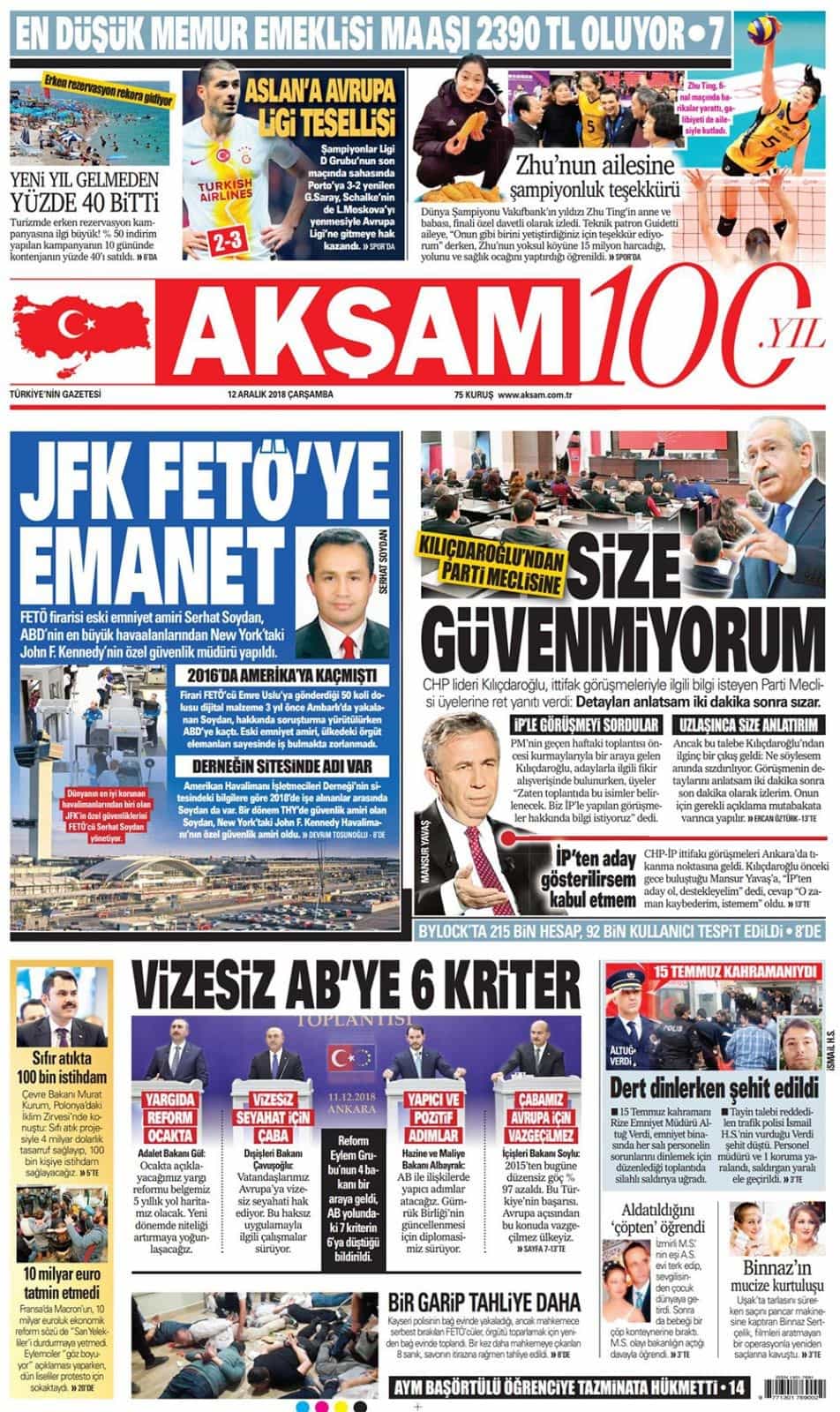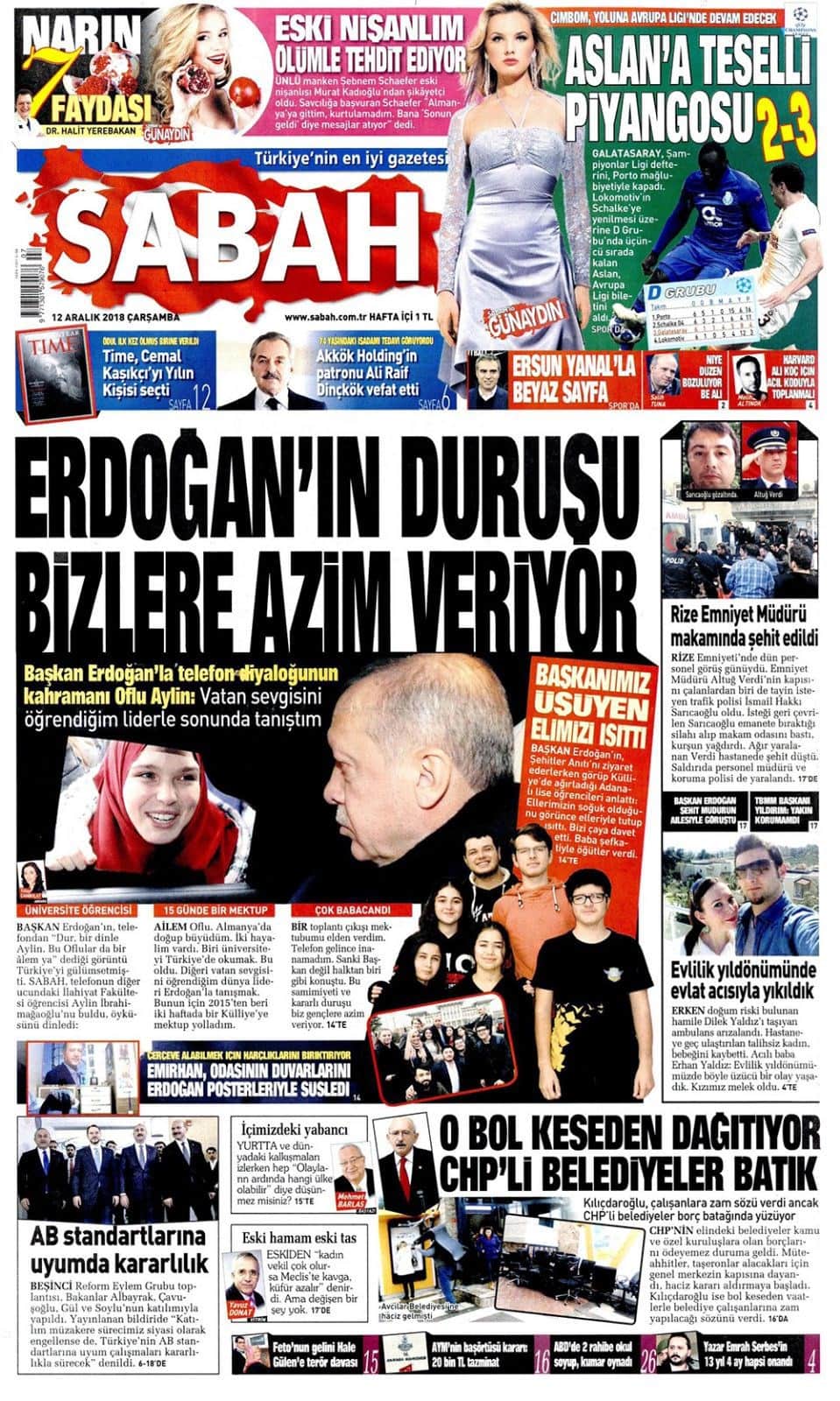 12 Aralık 2018 günün gazete manşetleri