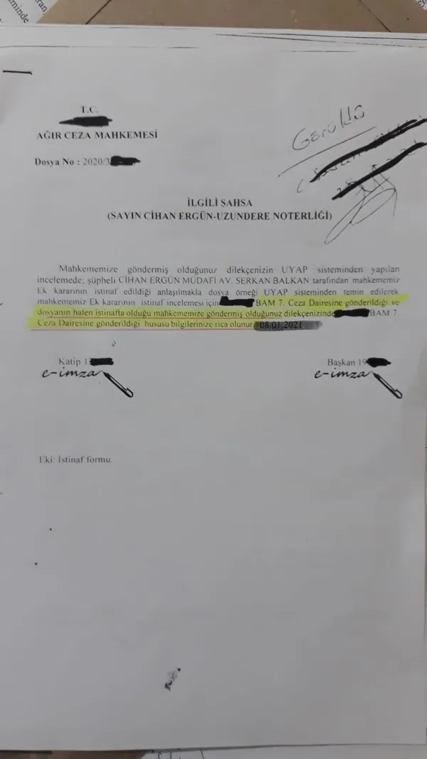 Mahkemenin verdiği, 18.11.2020 tarihli ilk kararının kendileri tarafından temyiz istinaf edilmesinin ardından kararın tümden değiştirildiği ve yepyeni bir karar tesis edildiğini kaydeden Ergün, “Çünkü biz temyiz İstinaf dilekçemizde dosyaya bakılmadığını, bir noter olduğumuzu, avukat olmadığımızı, salt bu nedenden dolayı dosyanın istinaf mahkemesi tarafından bozulması gerektiğini, belirttiğimizden dolayı farkına varılarak nihai kararını CMK ve yasalara aykırı olarak, değiştiriyor” dedi.